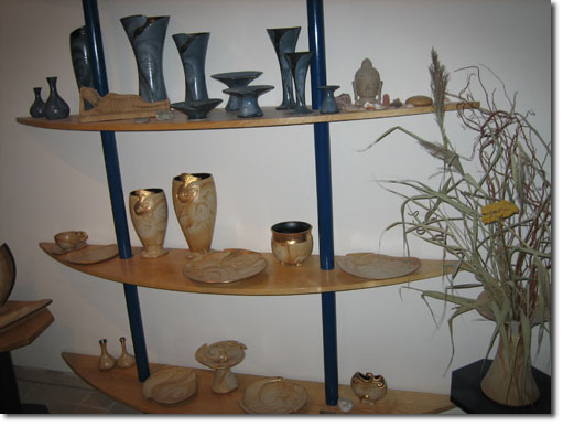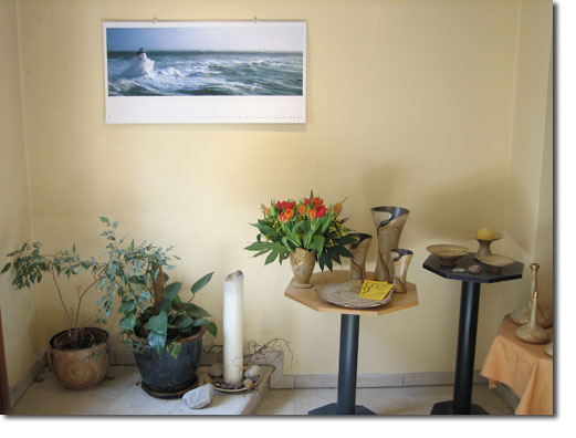 Der Verkaufsraum... Meine Arbeit ist ein Spiel mit den Elementen: die Erde - der Ton wird im Feuer - dem Ofen, gebrannt der Wind - die Bewegung als Gestalter der Oberfläche das Wasser - im Ton, in der Glasur, die Verbindung von Allem